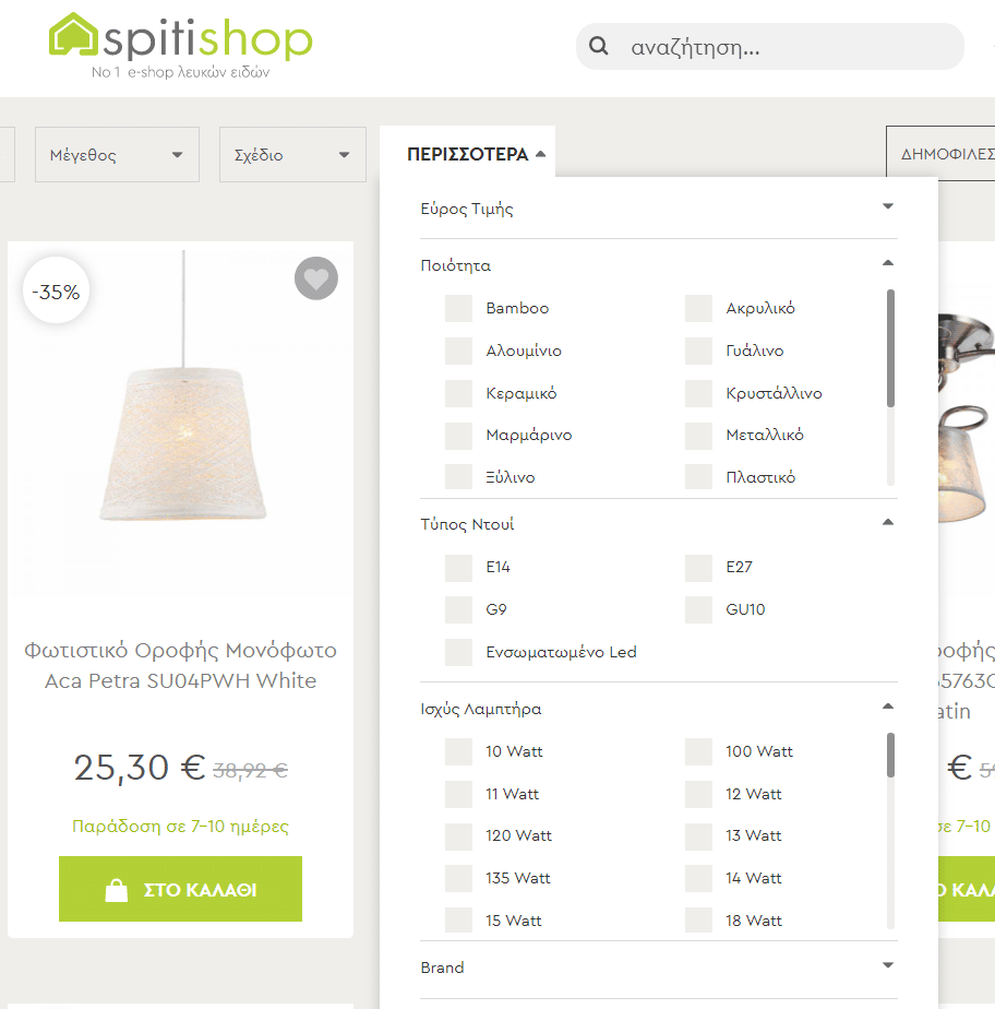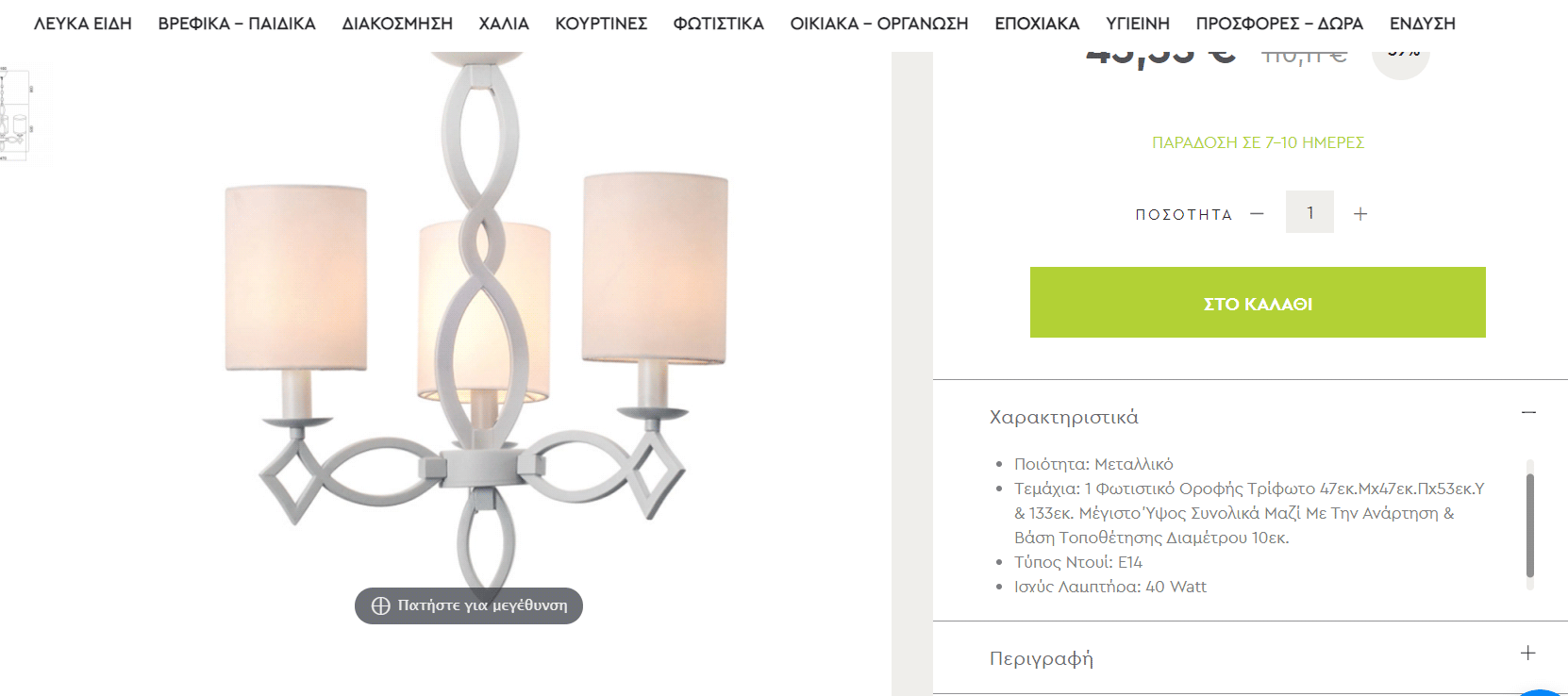 Τις πληροφορίες για τα τεχνικά χαρακτηριστικά κάθε φωτιστικού μπορείτε να τις βρείτε στα φίλτρα, τα οποία θα σας βοηθήσουν να δείτε τα αποτελέσματα που πραγματικά σας εξυπηρετούν, καθώς και στην ενότητα «χαρακτηριστικά» της σελίδας παρουσίασης του προϊόντος όπως βλέπετε και στις παρακάτω φωτογραφίες.