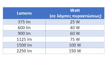 Φωτεινότητα: είναι η ένταση της φωτεινής ροής του λαμπτήρα που μετριέται σε lumen (λούμεν). Με απλά λόγια πόση ένταση έχει το φως που παράγει ο λαμπτήρας. Δείτε μια αντιστοιχία Lumen με τα Watt των παλαιότερων λαμπτήρων πυρακτώσεως ώστε να έχετε ένα σημείο αναφοράς: