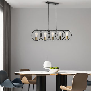 Αν δεν υπάρχει χώρος για τραπεζαρία στο σπίτι σας και χρησιμοποιείτε για φαγητό το πάσο της κουζίνας σας ή κάποιο πιο μικρό τραπέζι, σας προτείνουμε να επιλέξετε κάτι πιο απλό, όπως ένα μονόφωνο φωτιστικό, σε απλό σχέδιο και μίνιμαλ γραμμή.