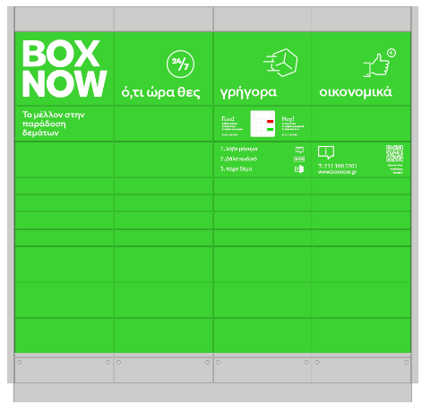 Με τη νέα μας συνεργασία με την BOX NOW, η παραγγελία σας παραδίδετε σε θυρίδα σε διεύθυνση της επιλογής σας και εσείς την παραλαμβάνετε με κωδικό που έρχεται στο κινητό σας, όποια ώρα σας εξυπηρετεί εντός 48 ωρών.