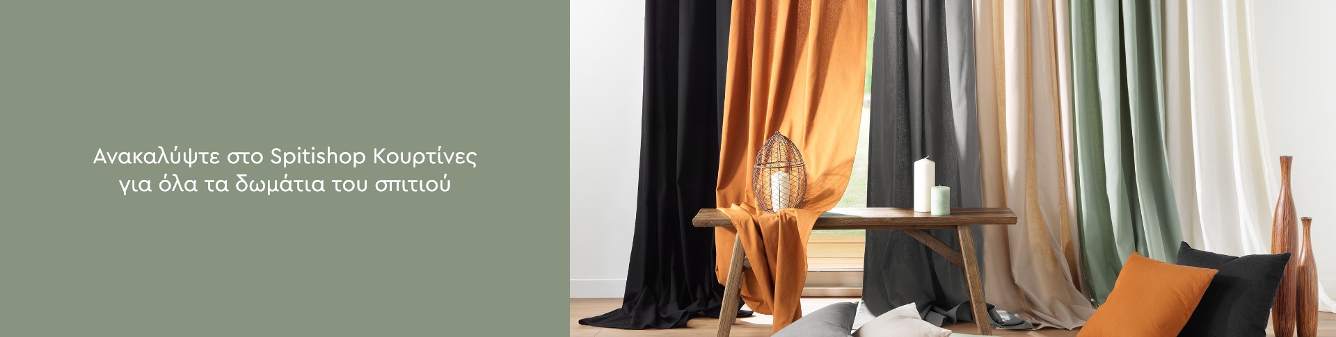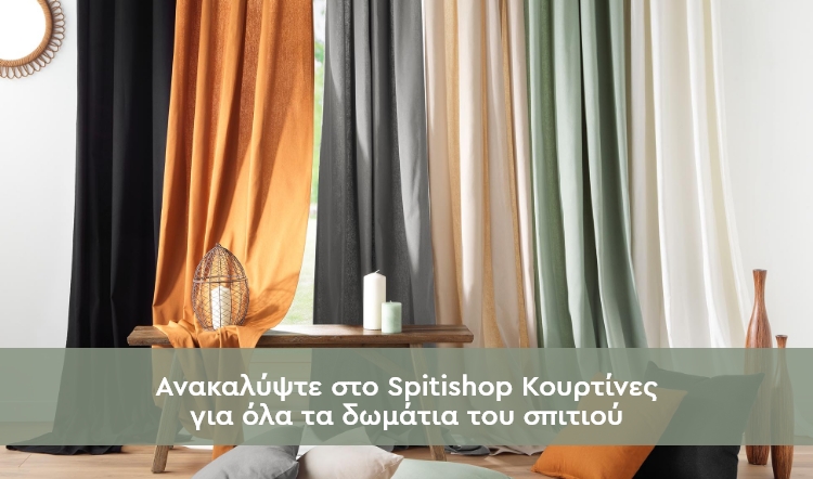 Προστατεύουν απ’ τον ήλιο, τα αδιάκριτα βλέμματα και ολοκληρώνουν το στυλ και τη διακόσμηση του χώρου. Οι κουρτίνες είναι μία απ’ τις πιο σημαντικές προσθήκες σε κάθε δωμάτιο του σπιτιού και πρέπει να επιλέγονται πάντα με προσοχή μιας και θα διαμορφώσουν και να ολοκληρώσουν το στυλ του χώρου σας. Βρείτε στο Spitishop μια μεγάλη ποικιλία από κουρτίνες σε πληθώρα σχεδίων που θα ικανοποιήσουν κάθε γούστο και θα ταιριάξουν σε κάθε είδους διακόσμηση! Κουρτίνες μονόχρωμες, κουρτίνες κρεβατοκάμαρας και κουρτίνες κρεβατοκάμαρας ρομαντικές, κουρτίνες σαλονιού, κουρτίνες σαλονιού μοντέρνες, κουρτίνες κουζίνας, παιδικές κουρτίνες, κουρτίνες μπάνιου, κουρτίνες παραθύρου, σε μικρά και μεγάλα μεγέθη, με τρουκς, τρέσα, υφασμάτινες θηλιές ή τιράντες, με υψηλή, μέτρια, χαμηλή σκίαση αλλά και κουρτίνες συσκότισης από τα αγαπημένα σας brands όπως: Gofis Home, Pierre Cardin, Das Home, Viopros, Anna Riska, Nautica, Ravelia κ.α. Ακόμη ανακαλύψτε μια μοναδική συλλογή από δέστρες κουρτίνας, κουρτίνες πόρτας, κουρτίνες παραθύρου και στόρια και συνδυάστε τις με χαλιά, ριχτάρια, διακοσμητικά μαξιλάρια, ρολόγια και διακοσμητικά τοίχου για να φτιάξετε ένα πανέμορφο σαλόνι!