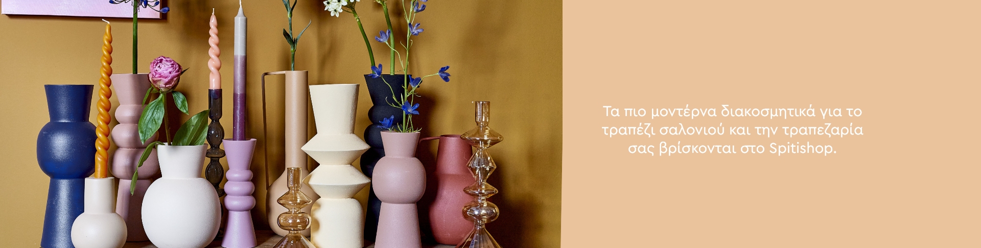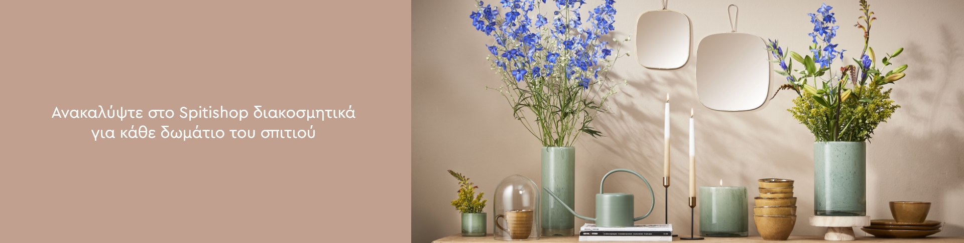 Θα βρείτε κομψά διακοσμητικά για το σαλόνι, ιδιαίτερες διακοσμητικές πινελιές για το υπνοδωμάτιο ή την τραπεζαρία αλλά και διακριτικές επιλογές για το μπάνιο. Χαρίστε μοναδικό χαρακτήρα στη διακόσμηση του χώρου σας με διακοσμητικά από το Spitishop με μοντέρνο και μίνιμαλ σχεδιασμό, έθνικ, φλοράλ και vintage στοιχεία για να επιλέξετε αυτά που θα ταιριάξουν καλύτερα στη δική σας διακόσμηση.