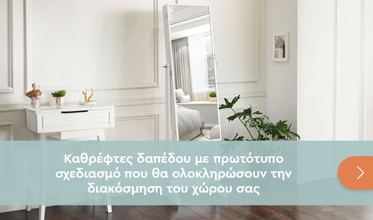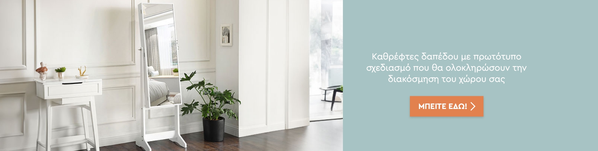 - Καθρέφτες τοίχου αλλά και καθρέφτες δαπέδου ιδανικούς για να διακοσμήσουν τον τοίχο πάνω από το έπιπλο εισόδου σας ή όποιο άλλο σημείο εσείς επιθυμείτε. Μπορείτε να συνδυάσετε 2 με 3 καθρέφτες διαφορετικών σχημάτων και μεγεθών μεταξύ τους για να δημιουργήσετε ένα eclectic chic ύφος.