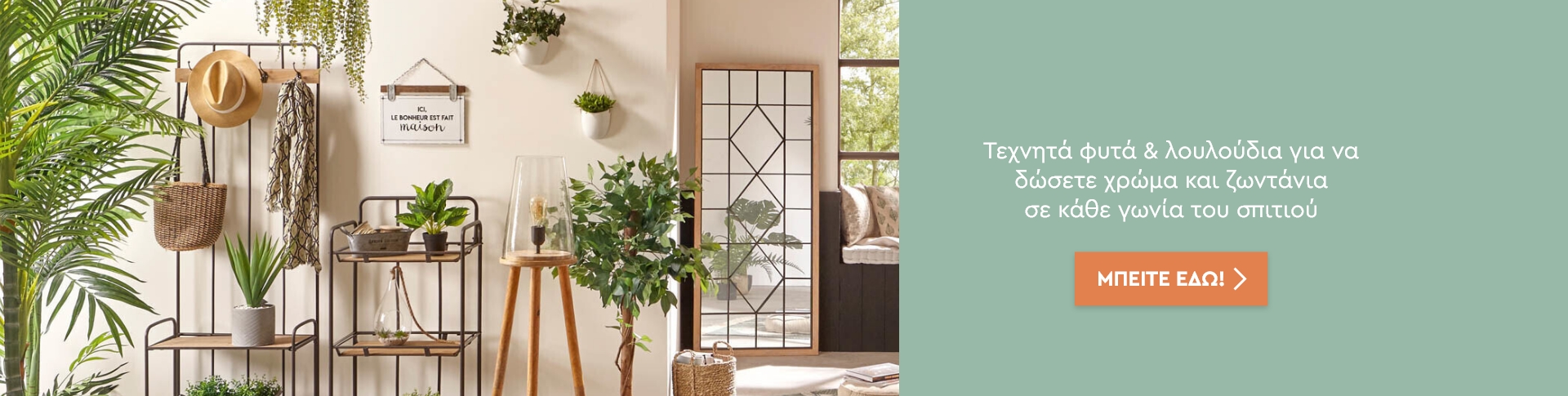 Μεταμορφώστε το σπίτι σας ολοκληρωτικά με τα εξαίσια λουλουδένια διακοσμητικά μας! Ανακαλύψτε τεχνητά φυτά σε γλάστρες με πλούσιο φύλλωμα, εντυπωσιακά λουλούδια και μπουκέτα λουλουδιών, pampas και διακοσμητικά κλαδιά που θα χαρίσουν ζωντάνια και θετική ενέργεια σε κάθε χώρο του σπιτιού σας.