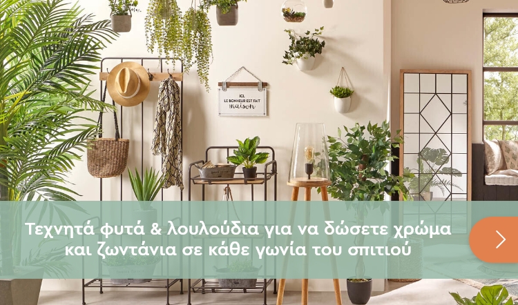 Αναδείξετε τη διακόσμηση του σπιτιού σας ή ακόμα και εκείνα τα ξεχασμένα σημεία που περνούν απαρατήρητα τοποθετώντας τεχνητά φυτά σε γλάστρα μέσα σε ψάθινα καλάθια ή άλλα τεχνητά φυτά και λουλούδια σε όμορφα βάζα δημιουργώντας την τέλεια διάθεση.