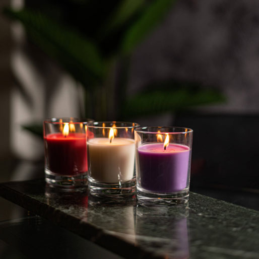 - 3 κεριά διαφορετικού μεγέθους και 2 κηροπήγια πάνω σε 1 δίσκο