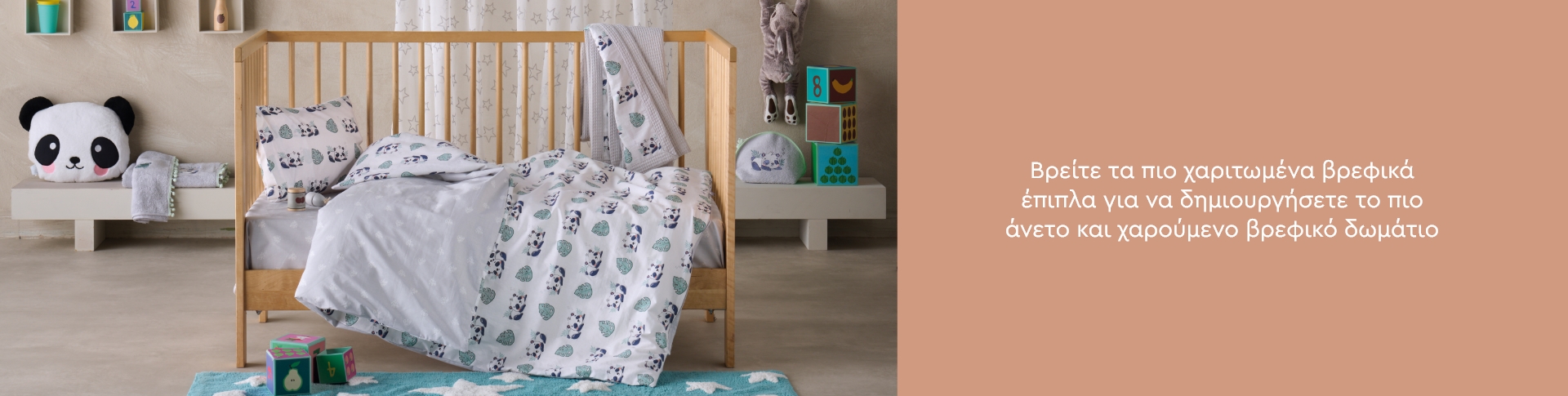 Στο Spitishop θα βρείτε έτοιμα σετ κούνιας ή μπορείτε να δημιουργήσετε το δικό σας, συνδυάζοντας ρούχα, κουβερτούλες, πετσέτες και διακοσμητικά.
