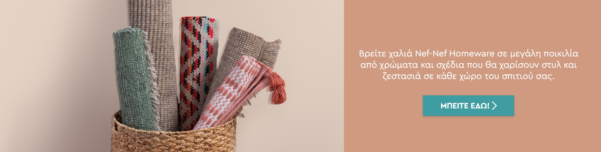 Είμαστε σίγουροι πως αν έχετε ακουστά τη Nef-Nef τότε θα γνωρίζετε πως φημίζεται για τις πετσέτες μπάνιου και τα σεντόνια της, τις κατηγορίες δηλαδή στις οποίες δραστηριοποιείται σχεδόν από την ίδρυσή της. Αν μείνετε όμως μόνο σε αυτές τις δύο κατηγορίες, θα χάσετε ευκαιρίες όπως τα φανταστικά ριχτάρια και τα ιδιαίτερα τραπεζομάντηλα, υφασμένα συνήθως από ανθεκτικό ύφασμα half-panama που αντέχει στις πλύσεις και τον καιρό.