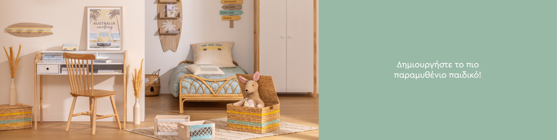 Ζωντανέψτε τη φαντασία των παιδιών με μια μοναδική συλλογή εμπνευσμένη από αγαπημένους παιδικούς ήρωες από Disney, Marvel και Avengers, όπως Frozen, Πέππα το Γουρουνάκι, Minecraft, Spiderman, Barbie, Lilo & Stitch, Paw Patrol, Avengers, Mickey, Minnie, Disney Princesses και Cars. Βρείτε σχολικά είδη όπως τσάντες, παγούρια, φαγητοδοχεία, πετσέτες και λευκά είδη, όπως σεντόνια, παπλώματα, κουβερλί, παπλωματοθήκες και πολλά ακόμη με εντυπωσιακά σχέδια και χαρούμενα χρώματα. Στη σελίδα θα ανακαλύψετε επίσης μια ευρεία γκάμα για τη διακόσμηση και την οργάνωση του παιδικού δωματίου, όπως παιδικά έπιπλα, διακοσμητικά, παιδικές σκηνές, παιδικά χαλιά, κουρτίνες, φωτιστικά, διακοσμητικά μαξιλάρια και αυτοκόλλητα τοίχου, που θα δώσουν στον παιδικό δωμάτιο χαρακτήρα και στυλ!