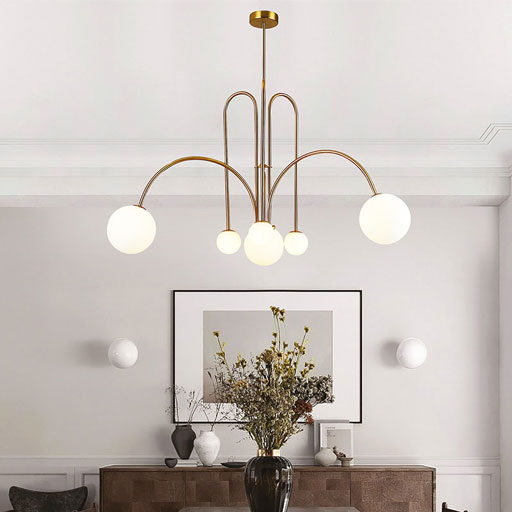 - Ενώ για έναν ψηλοτάβανο και μεγάλο χώρο, οι ιδανικές επιλογές είναι τα κρεμαστά πολύφωτα ή ακόμα και οι πολυέλαιοι.