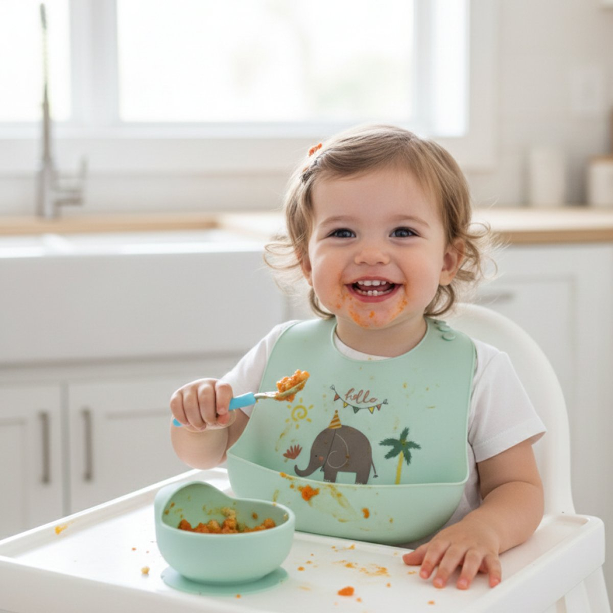 Σαλιάρα από την εταιρεία Gamberritos σε βεραμάν χρώμα με ζωάκια στο σχέδιο. Είναι κατασκευασμένη από 100% σιλικόνη, απαλλαγμένη από BPA. Η σιλικόνη είναι ένα αντιβακτηριδιακό και εξαιρετικά ανθεκτικό υλικό. Διαθέτει θήκη για να μην πέφτουν τροφές και ψίχουλα στο πάτωμα και να παραμένουν τα ρούχα καθαρά. Τοποθετείται και αφαιρείται εύκολα με μαλακά κουμπιά, ενώ έχει 3 διαφορετικές θέσεις κουμπώματος, ώστε να προσαρμόζεται σωστά στο λαιμουδάκι του μωρού σας. Καθαρίζεται εύκολα μετά από κάθε χρήση, απλά με ένα υγρό πανί. Κατάλληλη για μωρά 4+ μηνών.