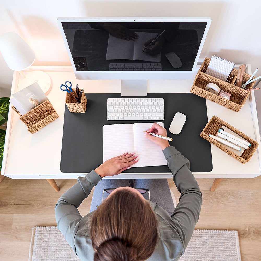 Mouse pad κατασκευασμένο από συνθετικό δέρμα σε μαύρο χρώμα. Η κάτω πλευρά είναι αντιολισθητική. Λόγω του υλικού που έχει φτιαχτεί είναι εύκολο στη φροντίδα και πολύ εύκολο στο καθάρισμα, μπορείτε εύκολα να το σκουπίσετε με ένα υγρό μαντηλάκι. Ιδανικό mouse pad για το σπίτι ή το γραφείο.