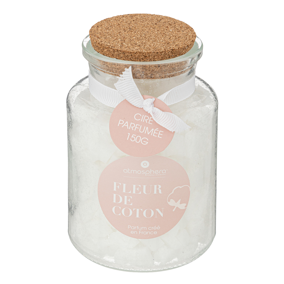 Wax melts που θα χαρίσουν άρωμα φρεσκάδας από βαμβάκι στο χώρο σας. Πρόκειται για αρωματικά κεράκια βάρους 150gr κατασκευασμένα από παραφίνη. Ιδανικά για αρωματιστές αλλά και σαν ποτπουρί σε ντουλάπια, συρτάρια, τσάντες, αυτοκίνητα. Τοποθετήστε μερικά κομματάκια αρωματικού κεριού στο πάνω μέρος του αρωματιστή. Μετά από λίγα λεπτά, τα κομματάκια του κεριού θα ρευστοποιηθούν και θα διαχέουν το άρωμά τους στο χώρο. Υπάρχουν 2 τρόποι για να καθαρίσετε τον αρωματιστή σας: Με την άκρη ενός μαχαιριού αν το κερί είναι στερεοποιημένο ή με χαρτί κουζίνας αν το κερί είναι ακόμα υγρό.